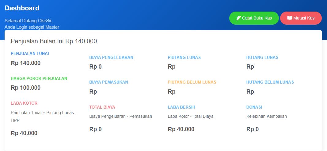 Dengan tampilan dashboard yang eye catching dan mudah dibaca oleh owner, sehingga langsung tau kondisi keuangan toko